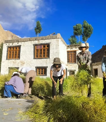 Welcome to our Agro Stay experience – where the stunning landscapes of Ladakh meet the humble richness of rural life. Nestled amidst snow-capped mountains, open valleys, and ancient villages, our AGro Stay invites you to be more than a visitor. Here, you live, learn, and grow with the land and its people.